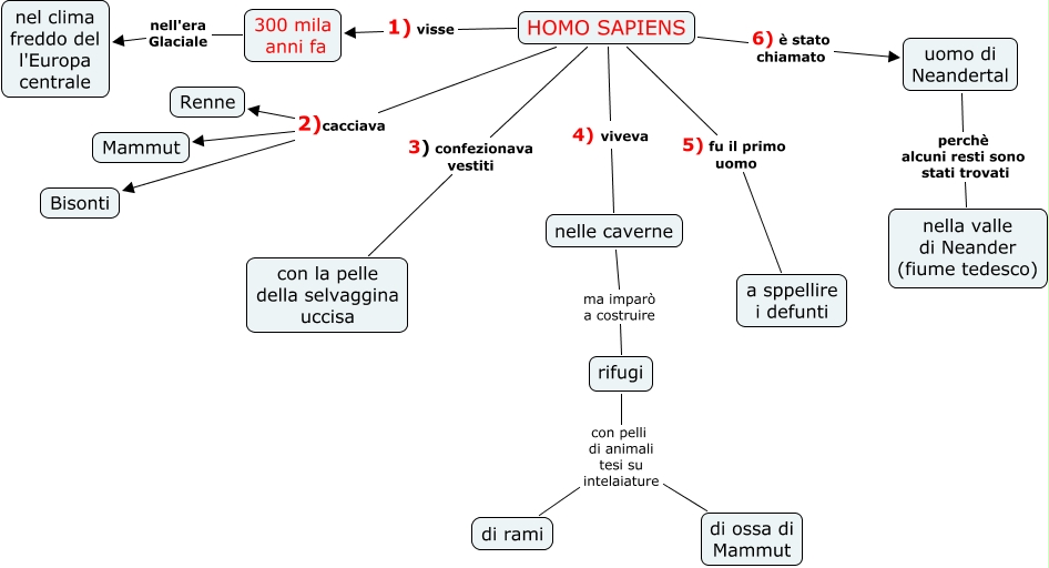 Mappa concettuale presentata dall'alunno loris lo bianco agli esami di stato del liceo classico (tommaso campanella, rc) nell'anno 2011 uomo di neanderthal. Per oltre 200 mila anni l'uomo di neanderthal ha vissuto in europa, un continente che, all'epoca (palaleolitico), era stretto nella morsa del gelo polare causato dalle glaciazioni, popolato da animali feroci e selvatici.